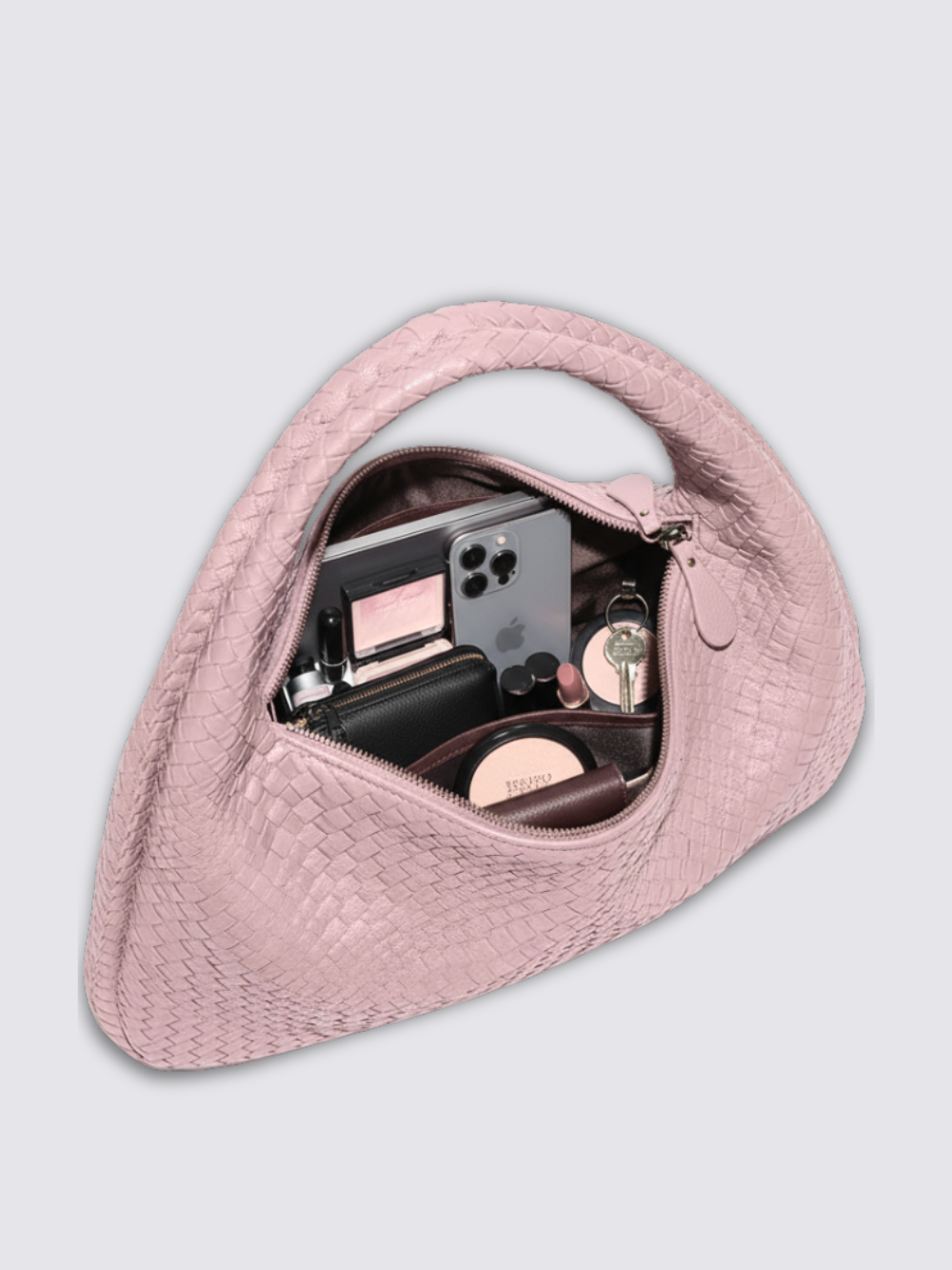 • Soft vegan leather with woven texture
